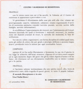12 settembre 1943: si costituisce il “Centro Valsesiano di Resistenza”; e con un editto datato lo stesso giorno chiama a raccolta tutti i Valsesiani, inizia con questa frase :